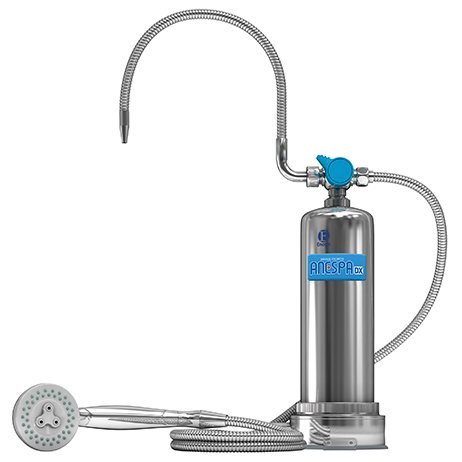 ANESPA DX produces a continuous stream of healthy ionized mineral water. With a new, larger ceramic cartridge that removes almost 100% of chlorine and other harmful substances in your tap water, and adds safe, moisturizing minerals that are healthy for your skin and hair. Enjoy a lovely shower or bath in ANESPA DX hot spring water!